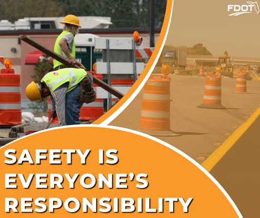 Safety on Florida’s roadways is everyone’s responsibility. FDOT urges motorists to practice safe driving habits, such as paying attention to the road and their surroundings in the work zone.