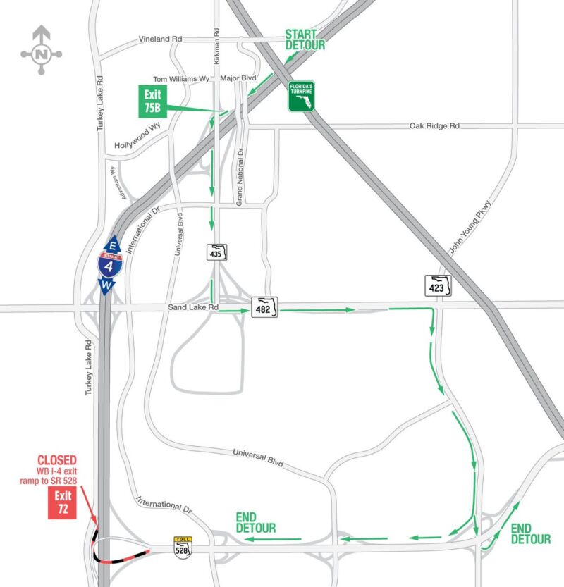 - Widening the westbound I-4 exit ramp to eastbound S.R. 528 (Beachline Expressway) from one lane to two. FDOT began this capacity improvement project in 2024 and anticipates reaching completion in 2026.