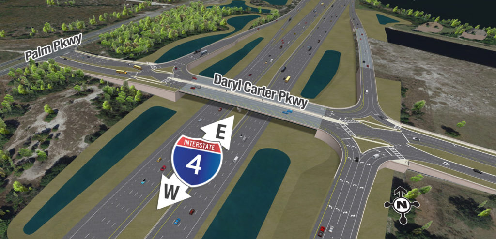 With three new ramps connecting directly to Daryl Carter Parkway, drivers on both eastbound and westbound I-4 now have easy access to Daryl Carter Parkway from two new exit ramps, and motorists can also access eastbound I-4 right from Daryl Carter Parkway. A westbound I-4 entrance ramp will be constructed in the future.